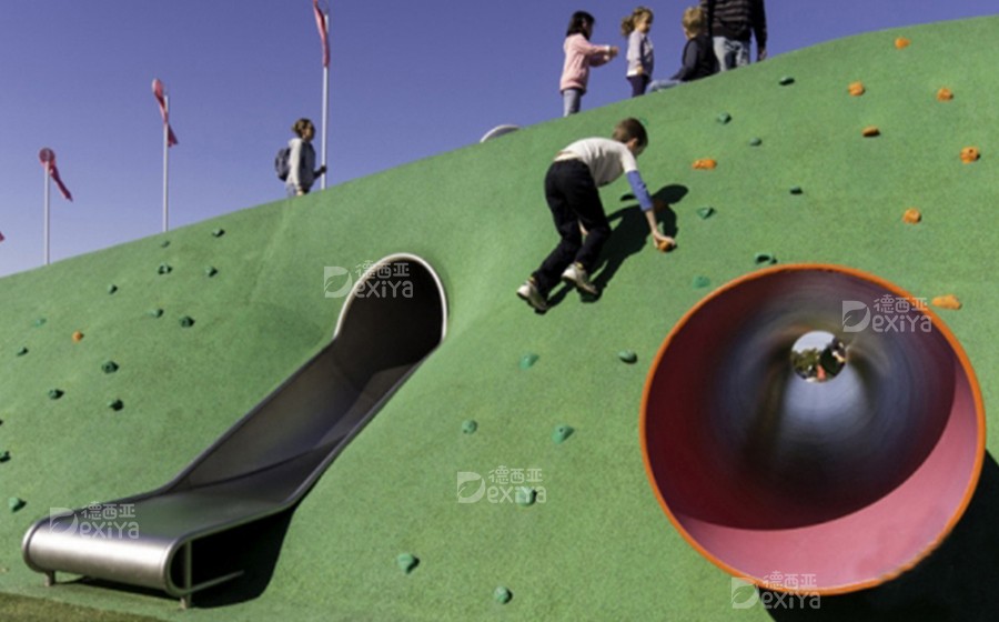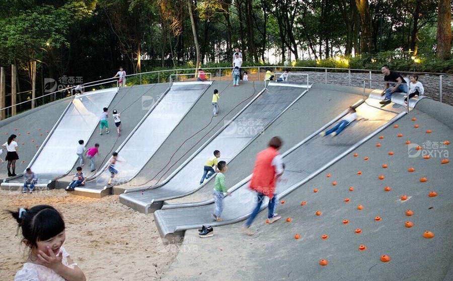 组合滑梯是现在很多游乐园,公园或者小区都有的儿童无动力游乐设备,这种设备结合了攀登,爬行,滑动等行为,不仅可以训练孩子的眼手脚协调性,还可以刺激脑垂体,增强平衡性。同时,它也能很好的培养孩子竞争和合作性,孩子在前前后后排队上滑梯或者玩耍的时候,跑得快的孩子往往能获得更多的玩耍滑动机会,无形中就会增加孩子们潜意识的竞争性;如果孩子们在玩耍过程中,进行了小队分组模式,不同小队之间还能形成一种游戏模式的竞争,而其内部小组中则会涉及到合作模式。这些人与人之间的相处方式,都可以通过儿童游乐设备将孩子们连接起来,形成儿童的游乐社交。