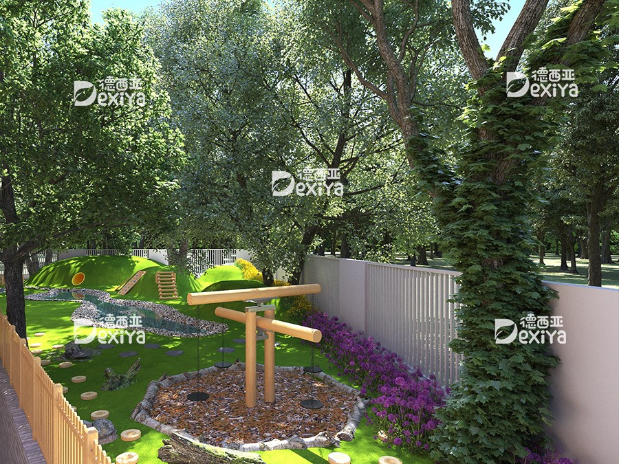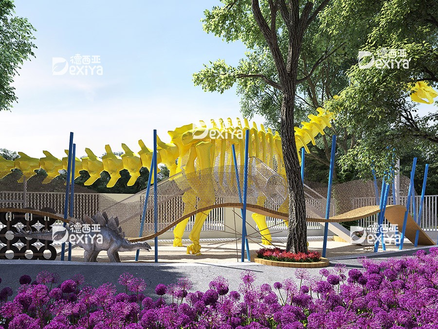 项目融汇生物、物理、地理、人文、社会等自然科学,着手打造了九大游戏区。分别为恐龙主题游戏区、山地栈道游戏、水系统游戏区、声音与音乐游戏区,未来派游戏区、交通规则体验区、惊险地图攀岩、风车、沙地游戏,充分将游戏设施与自然景观环境进行有机结合,让孩子亲近自然、寓教于乐、并不断探索自然之美,感受自然科学的力量,塑造自然的性格。