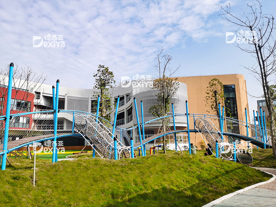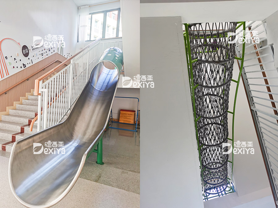 ▲楼间滑梯安装要在教学楼装修前就完成