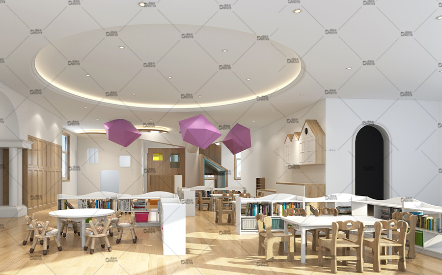 室内我们根据不同的主题屋,设置了相应的适合孩子年龄段观感与之感兴趣的家具和玩具。给孩子开启丰富多彩的世界,更好地启迪每个孩子的心智,给孩子无限发展的可能。