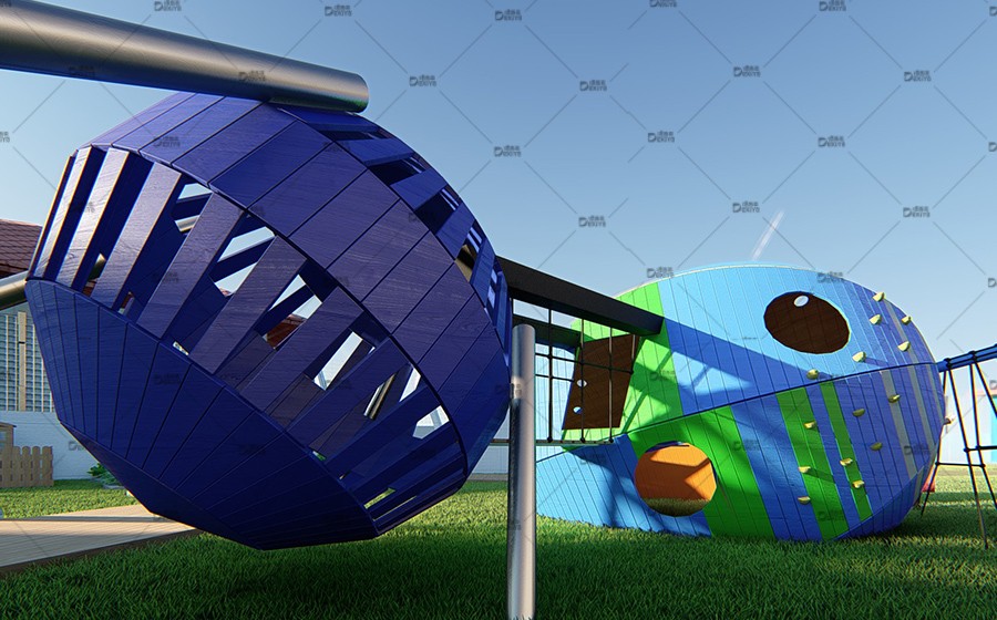 没有小朋友能拒绝多面体篮球屋的诱惑,明亮夺目的色彩,多样化的游玩空间,配合攀爬网设计,触发儿童视觉、触觉等多重感官发展。